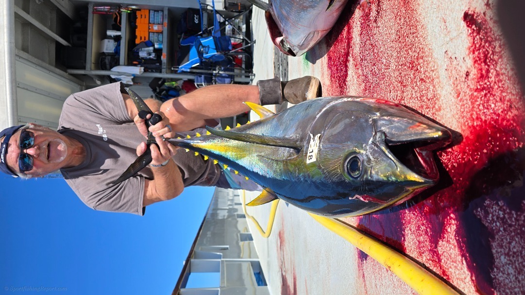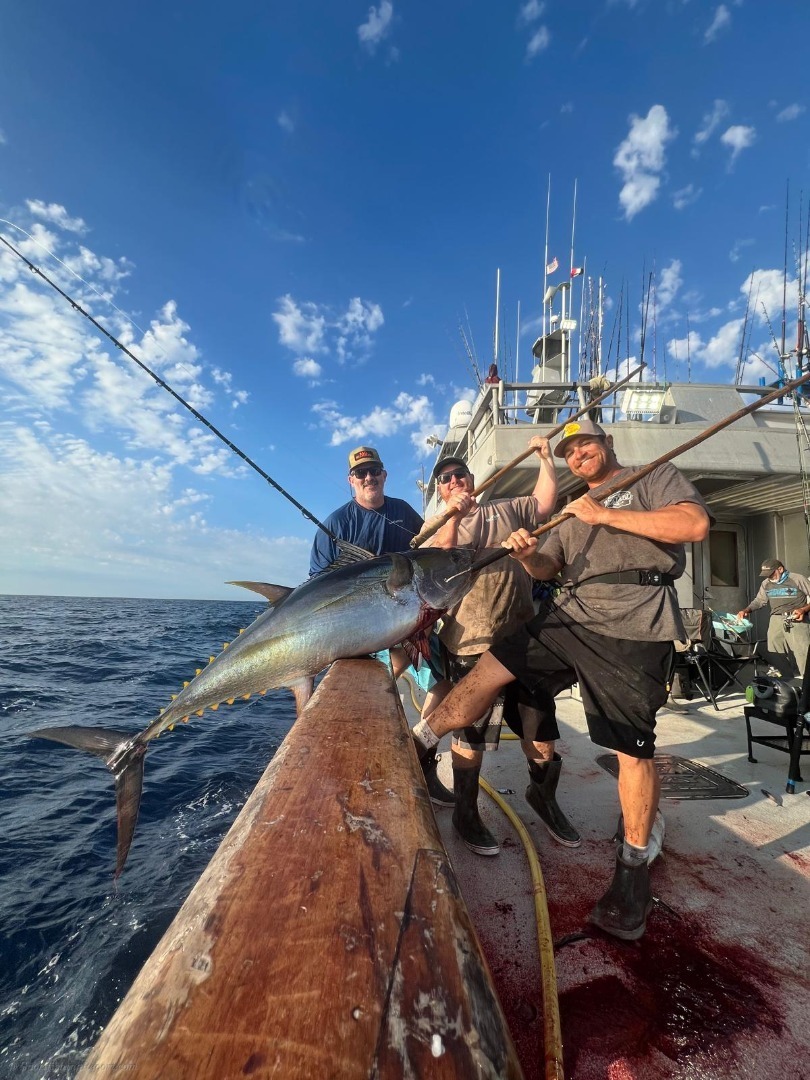 Our OC Tuna group crushed it on their first fishing day. The quality was top-notch, with yellowfin tuna up to 100 pounds! We're looking forward to getting back at the rail first thing in the morning.