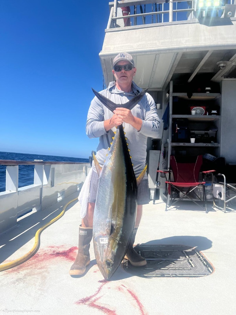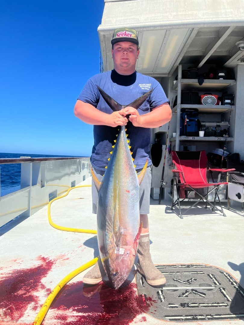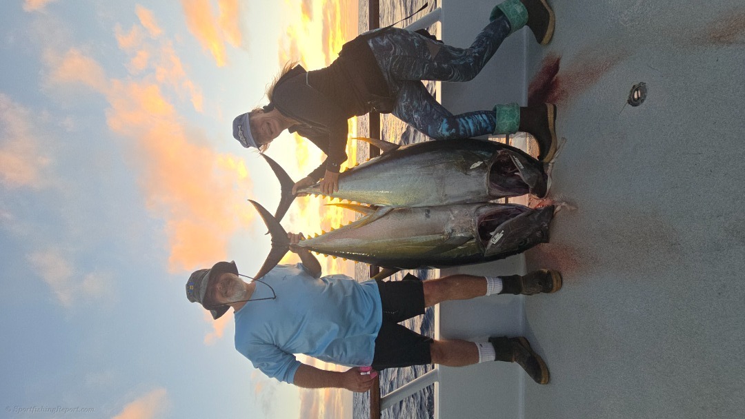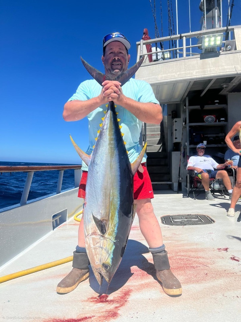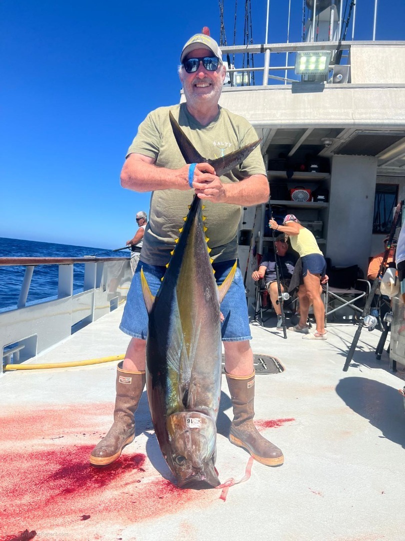 Managed to land a few nice yellowfin tuna this morning before taking off. We are heading up in choppy weather to position ourselves for yellowtail tomorrow.