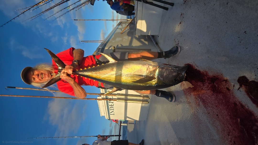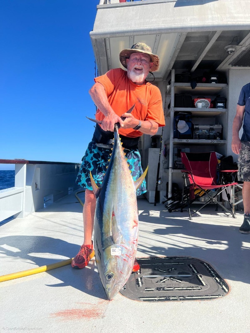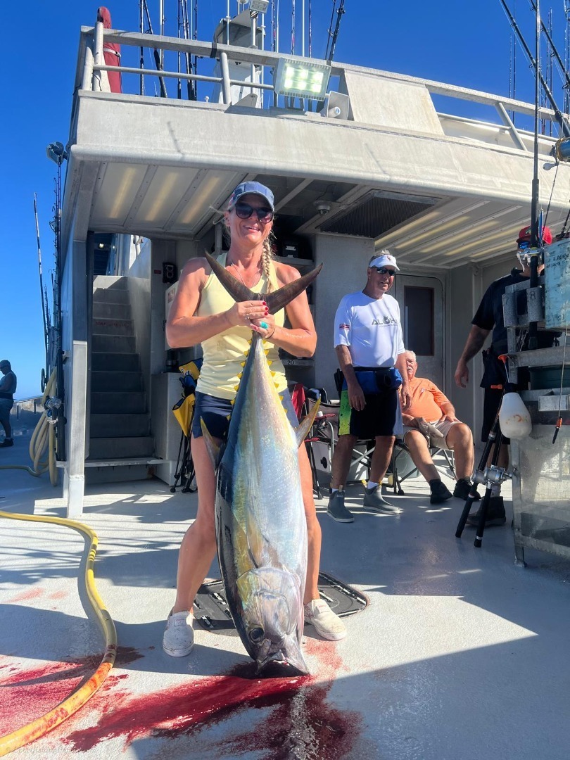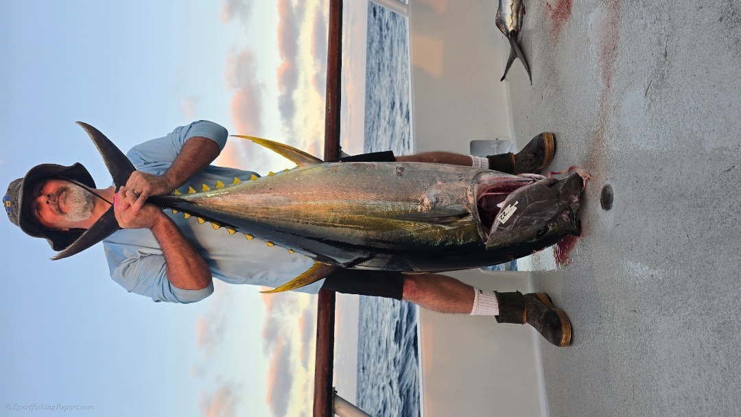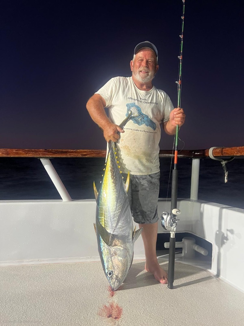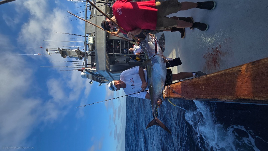 Managed to land a few nice yellowfin tuna this morning before taking off. We are heading up in choppy weather to position ourselves for yellowtail tomorrow.
