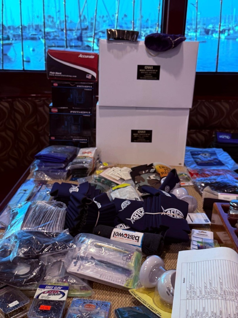 Adding to the excitement, Dr. Fred hosted a generous raffle/giveaway, distributing excellent gear such as Penn and Accurate reels, rods, jigs, hooks, shirts, hats, anf much more for the group to use.
